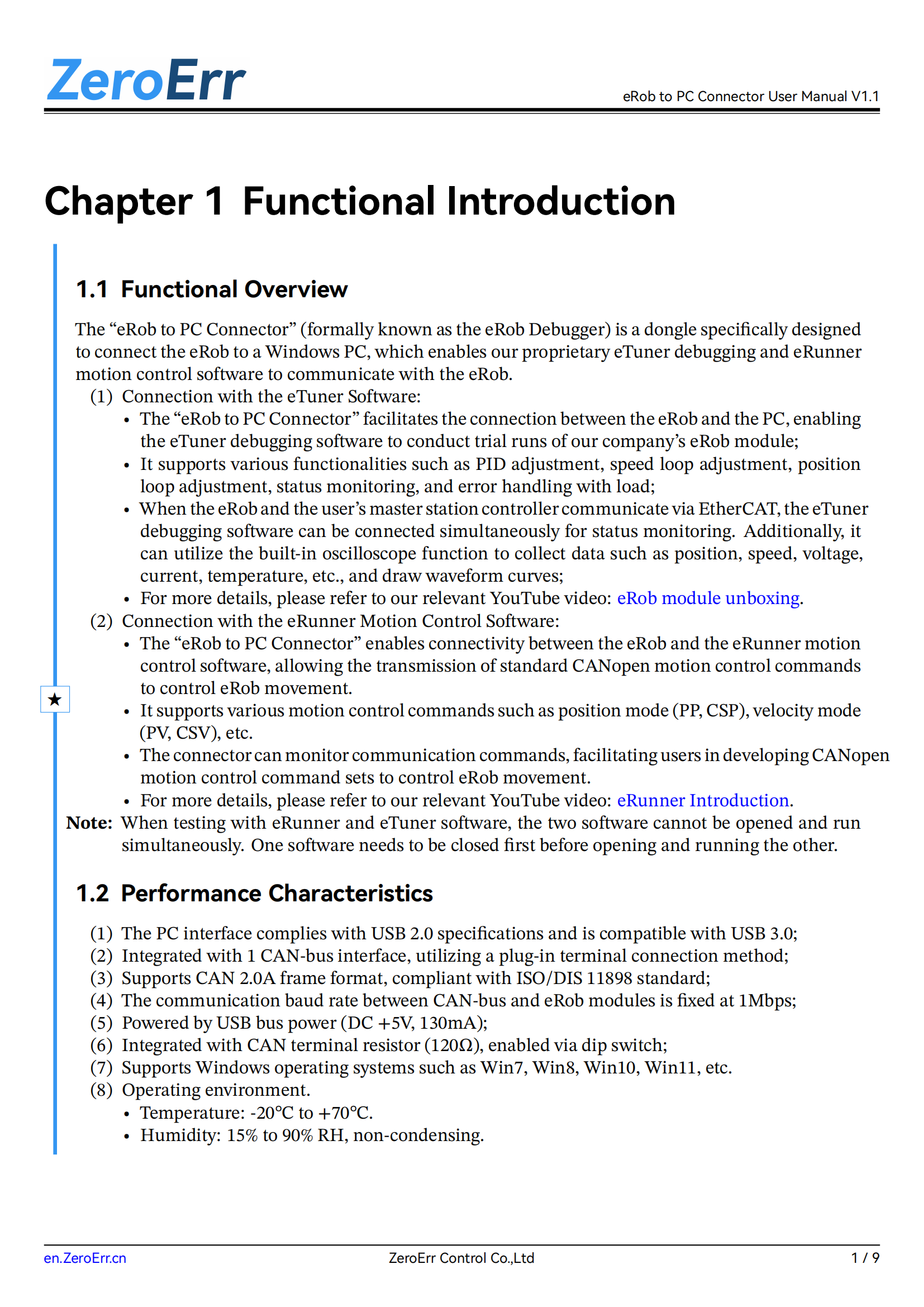 eRob to PC Connector User Manual Update Release (V1.1)