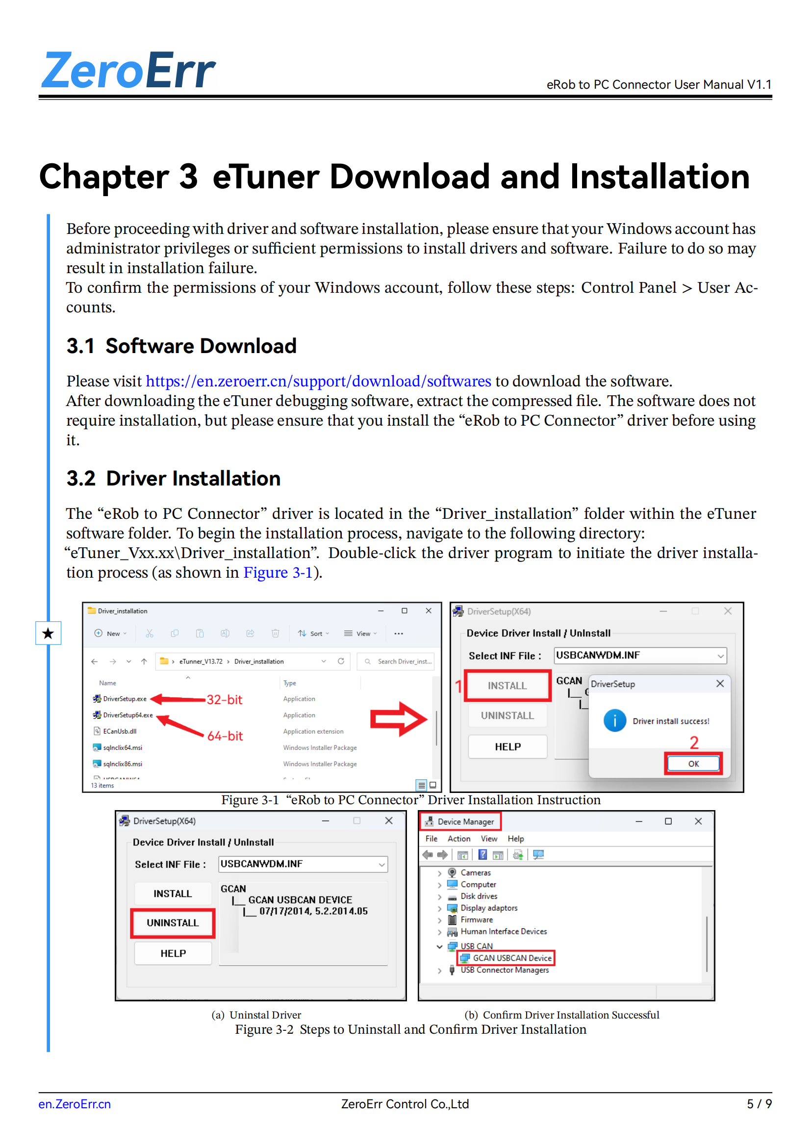 In Chapter 3, provide instructions for downloading the eTuner software and enhance the driver installation steps.