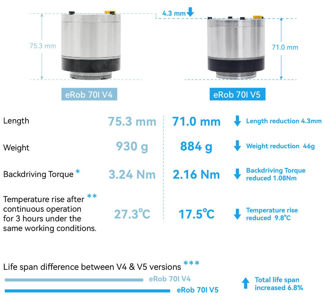 The life span of eRob 70I V5 increased 6.8%.